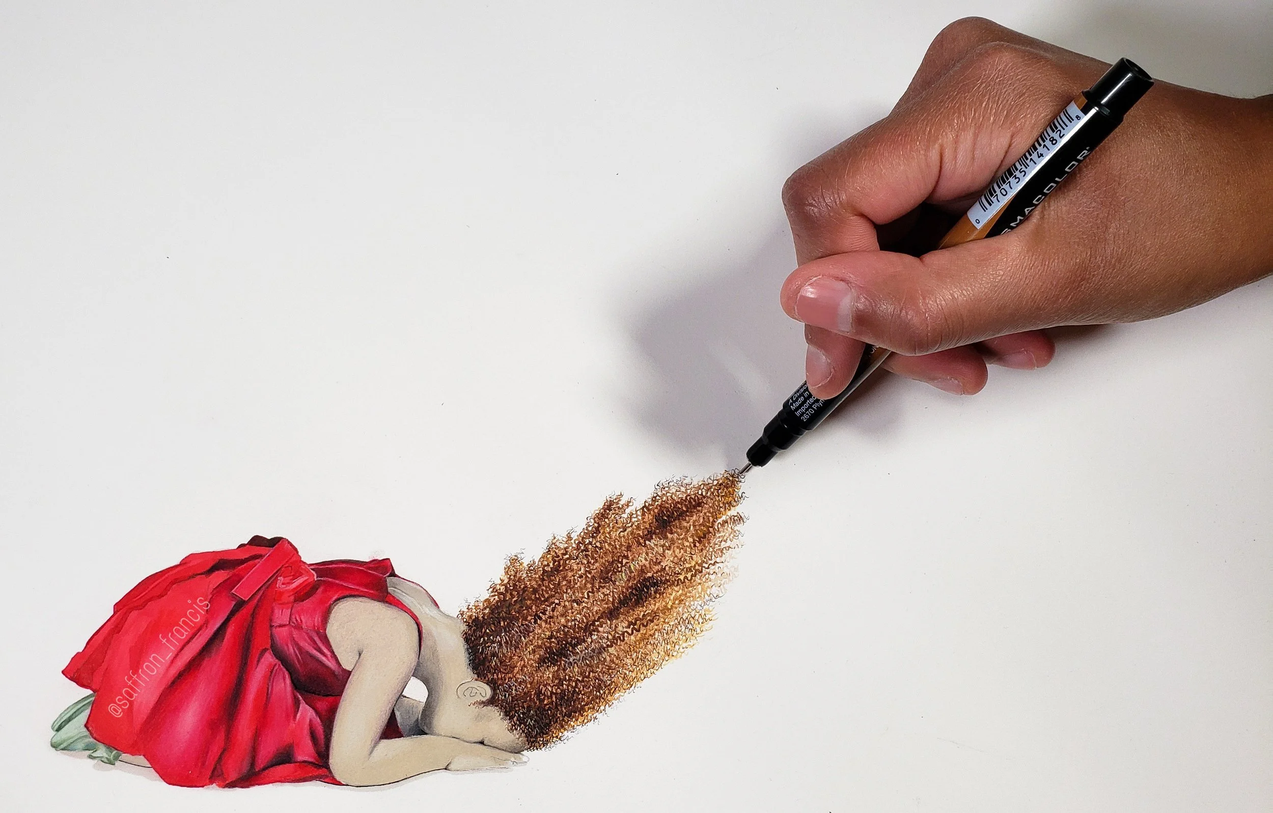 Holding a pen for the first time became so much more than writing down my thoughts — it became a tool to expressing my creativity. Gradually, practising with new forms of materials such as pencil crayons, oil and acrylic paints, and so forth, has allowed me to tell my story to the world.
