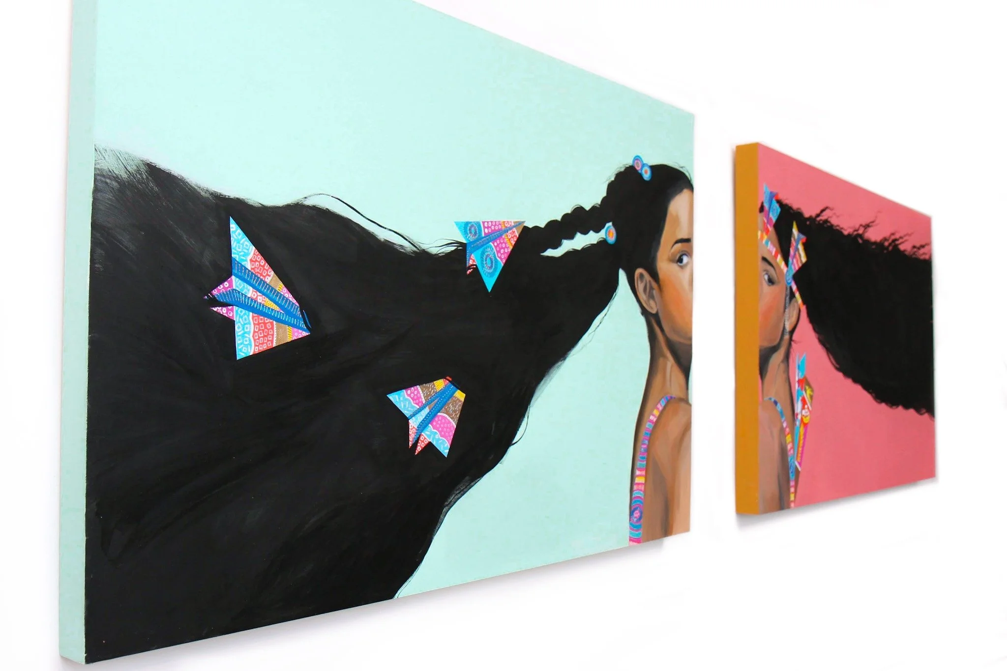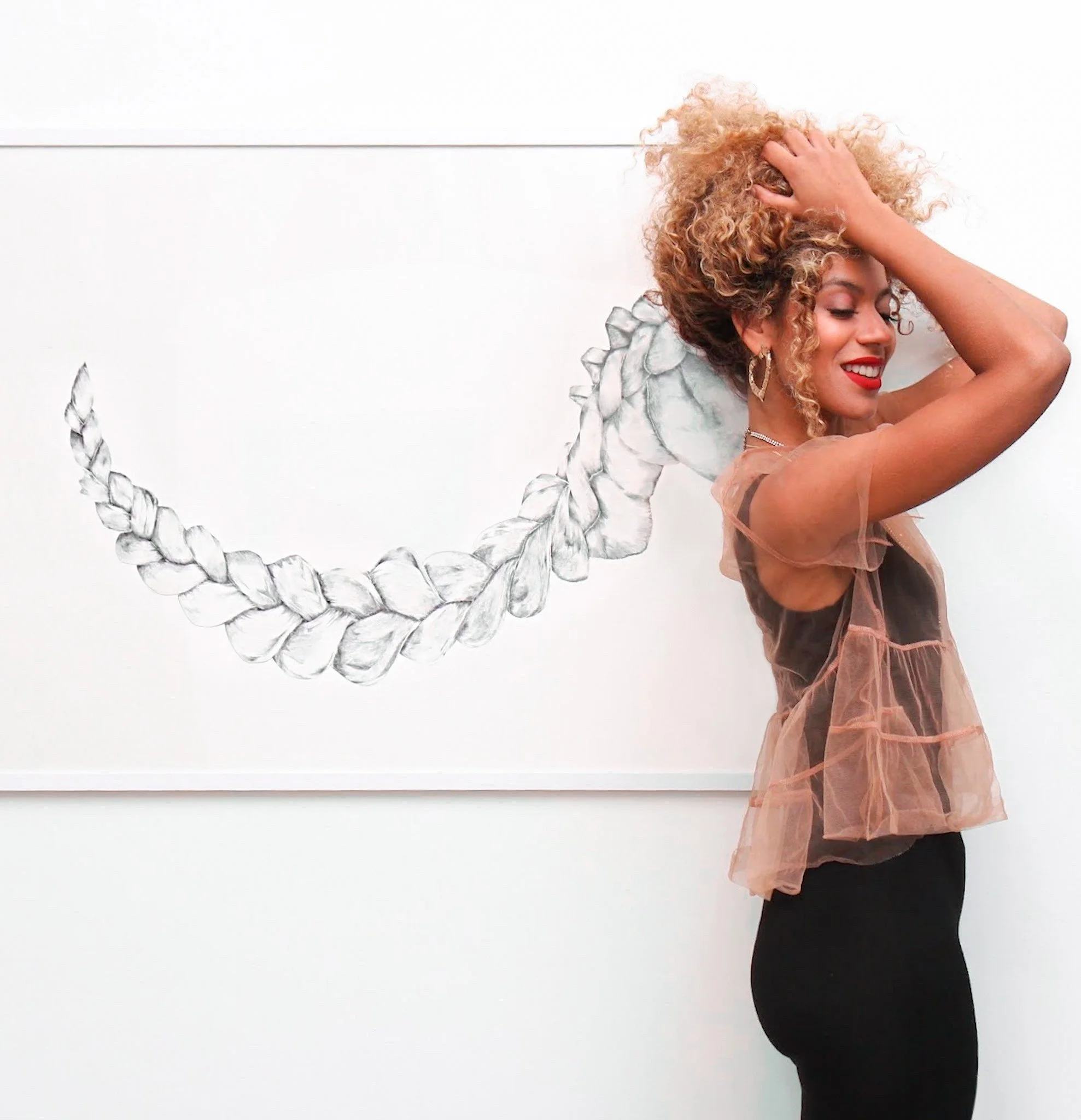 Showcased at Daniel’s Spectrum in Toronto, ‘IDENTITY,’ illustrates the up and coming work of Saffron in which ball point pen and urban living intertwine through inspiration amongst earlier pieces. In doing so, the monochromatic work delves into pops of colour as the artist grows older and tells the relationship with her hair and the experiences she faced as a biracial women in a multicultural city.